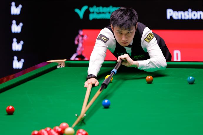 第二阶段战罢,赵心童以9-7的比分暂时领先丁俊晖。